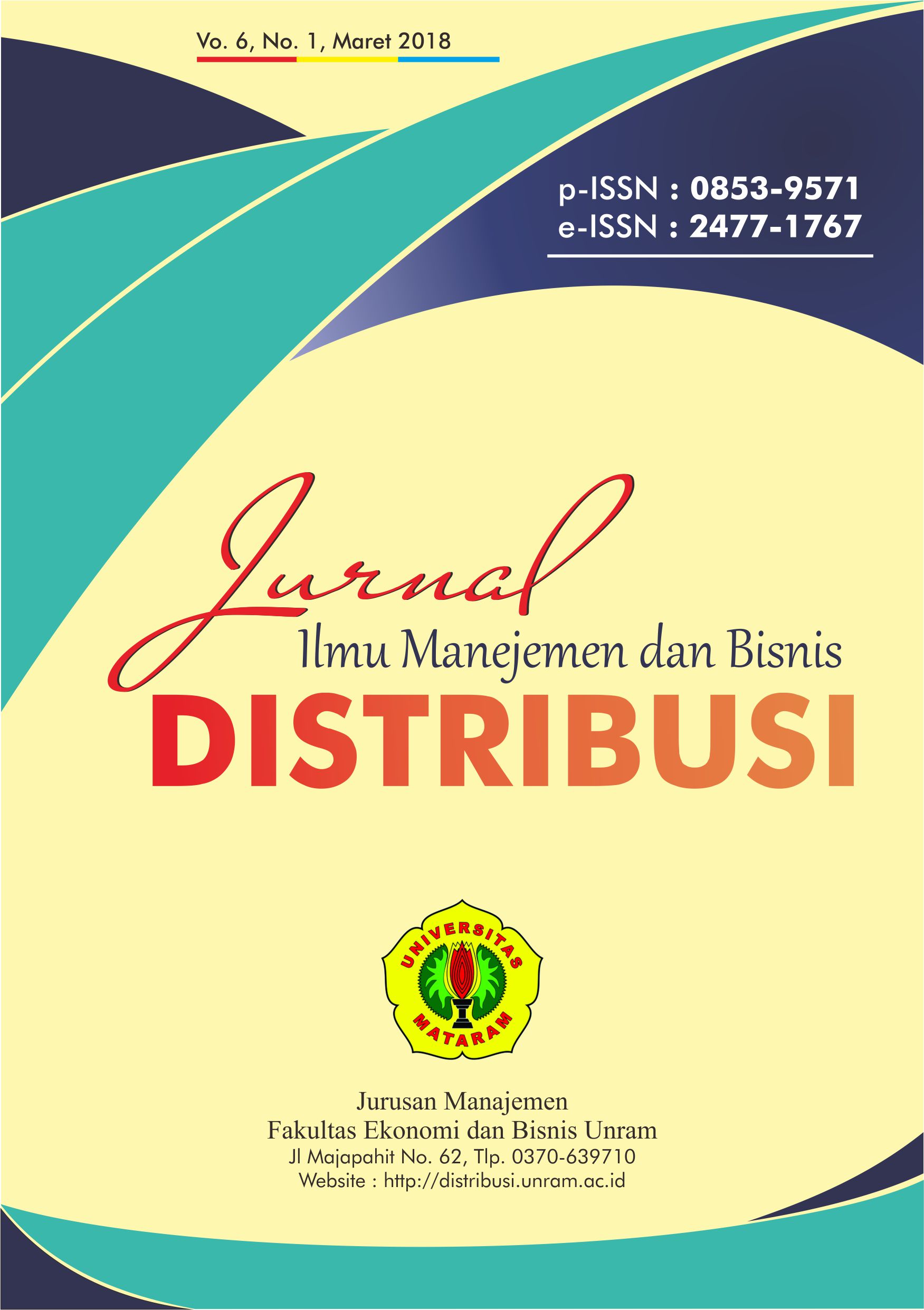 Jurnal Distribusi adalah jurnal ilmiah akses terbuka peer-reviewed yang dikelola dan diterbitkan oleh Universitas Mataram. Jurnal tersebut menerbitkan berbagai penelitian dan ulasan di bidang manajemen. Jurnal ini diterbitkan dua kali setahun pada bulan Maret dan September; terdaftar dengan ISSN 0853-957X & E-ISSN 2477-1767.